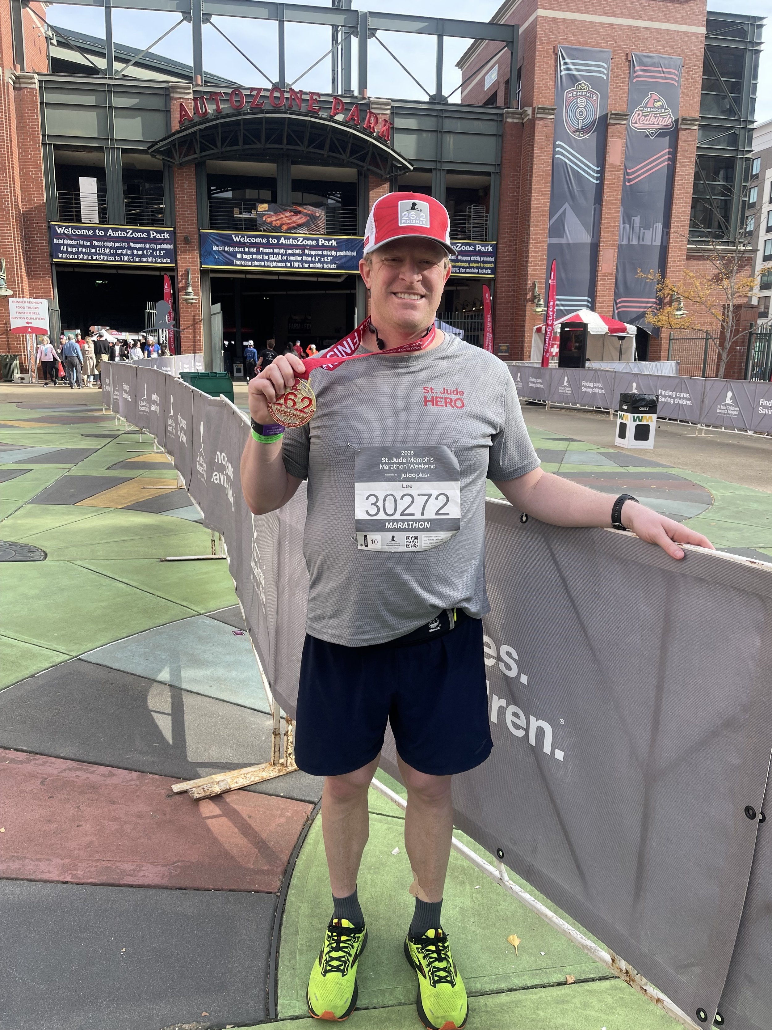 He will do this not because he’s a lifelong avid runner or because he just happens to be in Memphis that day, but because for the 2nd time, Lee is running the St. Jude Marathon as a “hero,”— a runner who fundraises for the organization while training for the race.