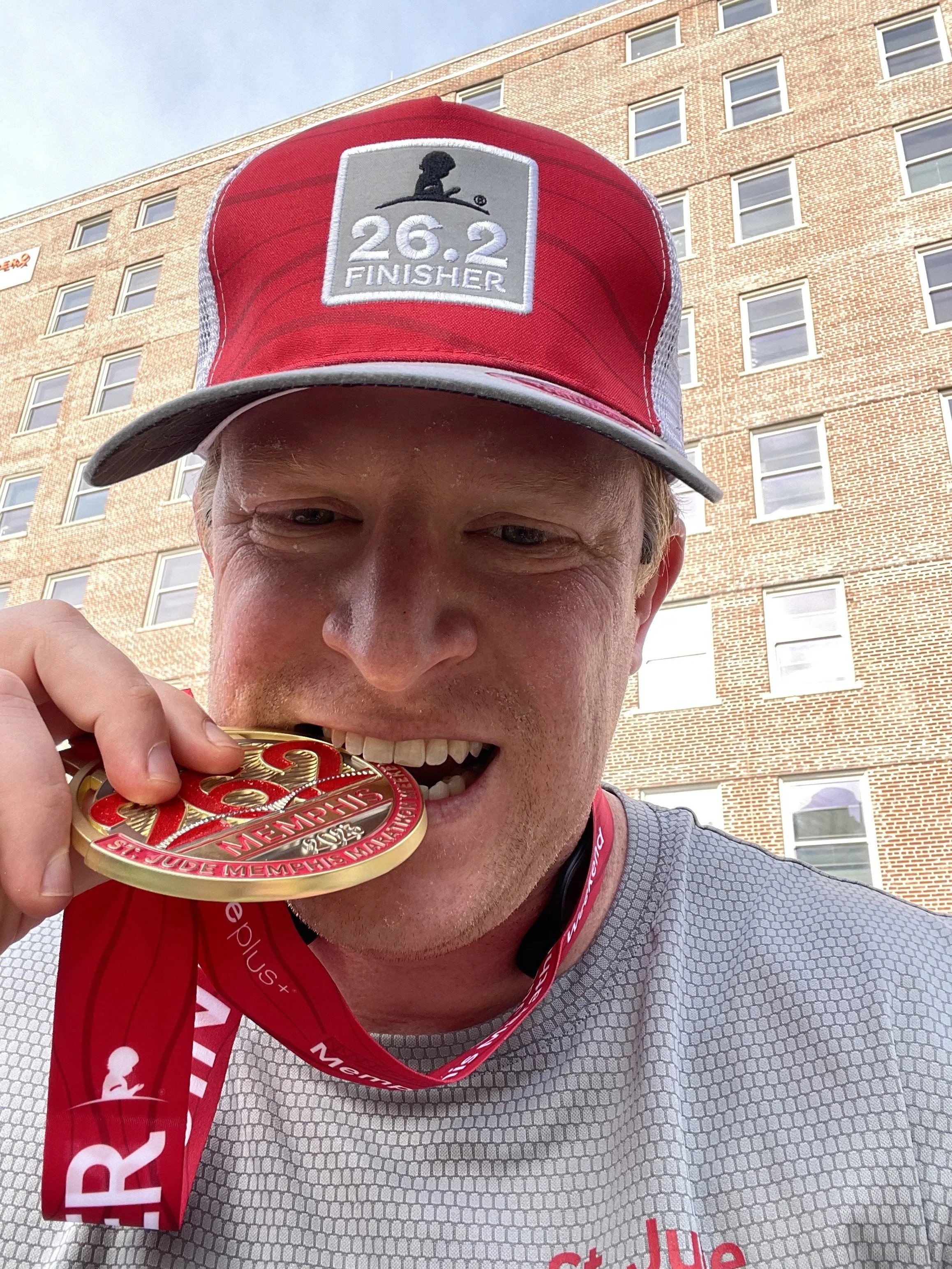 He didn’t dive right in with marathons, though. He started in 2022 with the famed Couch to 5K program, running just a minute at a time and building up his endurance for a year before a friend mentioned running the 2023 St. Jude Marathon. A third friend ended up joining them, and he thought it would be a one-off, but after running a half-marathon later and being pleased with his time, “the bug,” as he calls it, bit him again.